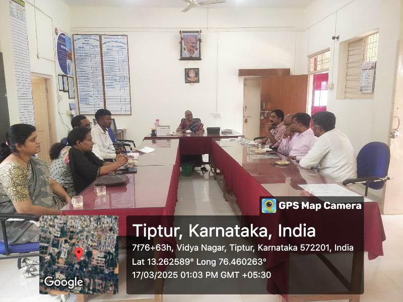 On 17-3-2025 Alumni meeting was held to discuss about conducting program during the month of April-2025. President Mr Jyoti Ganesh, vice president Mr Mallikarjuna Prasanna, honorary president Sri Halapa S V, treasurer SM Jagadeesh secretary Rudresh S R and principal Dr Vijay Kumari TR were present.