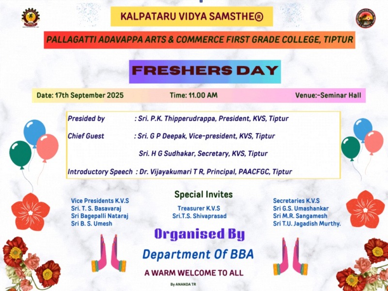 When the Kalpataru Vidya Samsthe Trust was formed in 1962, to administer Kalpataru College, it offered all the three streams of arts, science and commerce. The college flourished for two decades until the strength exceeded 2,500 students. The college had to be bifurcated according to the directions of the collegiate education. So, an independent college for the Arts and Commerce streams was established in the year 1982 and was named after the founder president and philanthropist, Pallagatti Adavappa, while, the science college retained the name Kalpataru.