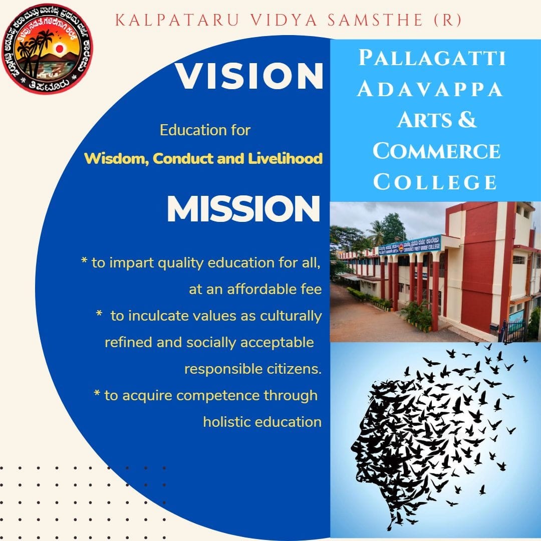 It is with immense pride and a deep sense of commitment that I welcome you to Pallagatti Adavappa Arts and Commerce First Grade College, Tiptur an Institution under Kalpataru Vidya Samsthe ® is dedicated to fostering academic excellence, ethical values, and holistic development since its inception in 1962. For over six decades, our college has been a beacon of knowledge, shaping generations of students from rural area into responsible and accomplished individuals. [In 1982 because of huge strength the Kalpataru College got bifurcated as Pallagatti Adavappa Arts and Commerce First Grade College and Kalpataru Science College].