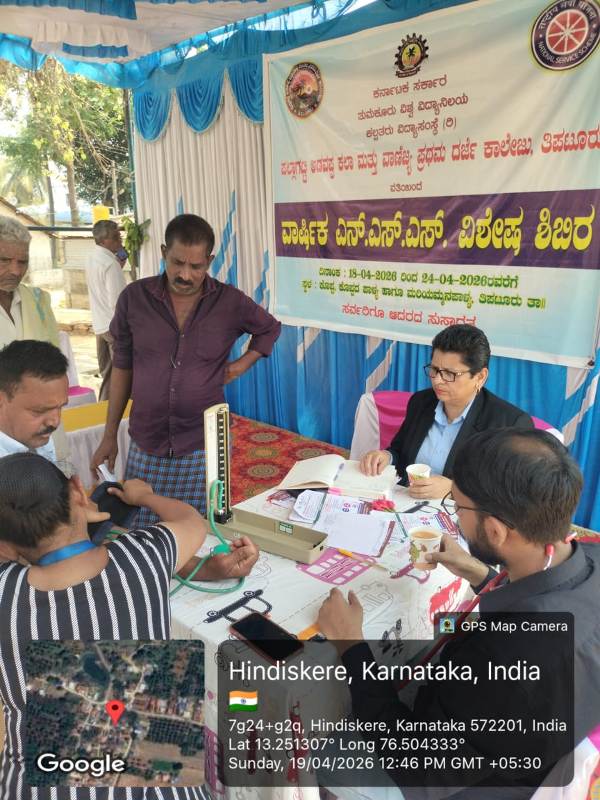 ಕೊಪ್ಪ,ಕೊಪ್ಪದಪಾಳ್ಯ ಹಾಗೂ ಮರಿಯಮ್ಮನಪಾಳ್ಯದಲ್ಲಿ ಹಮ್ಮಿಕೊಂಡಿರುವ NSS ವಿಶೇಷ ಶಿಬಿರದಲ್ಲಿ ದಿನಾಂಕ 19-04-2026 ರಂದು ತಿಪಟೂರು ವೈಭವಿ ಆಸ್ಪತ್ರೆ ವೈದ್ಯಾಧಿಕಾರಿಗಳ ತಂಡದವರಿಂದ ಉಚಿತ ವೈದ್ಯಕೀಯ ತಪಾಸಣೆ ನಡೆಸಲಾಯಿತು.